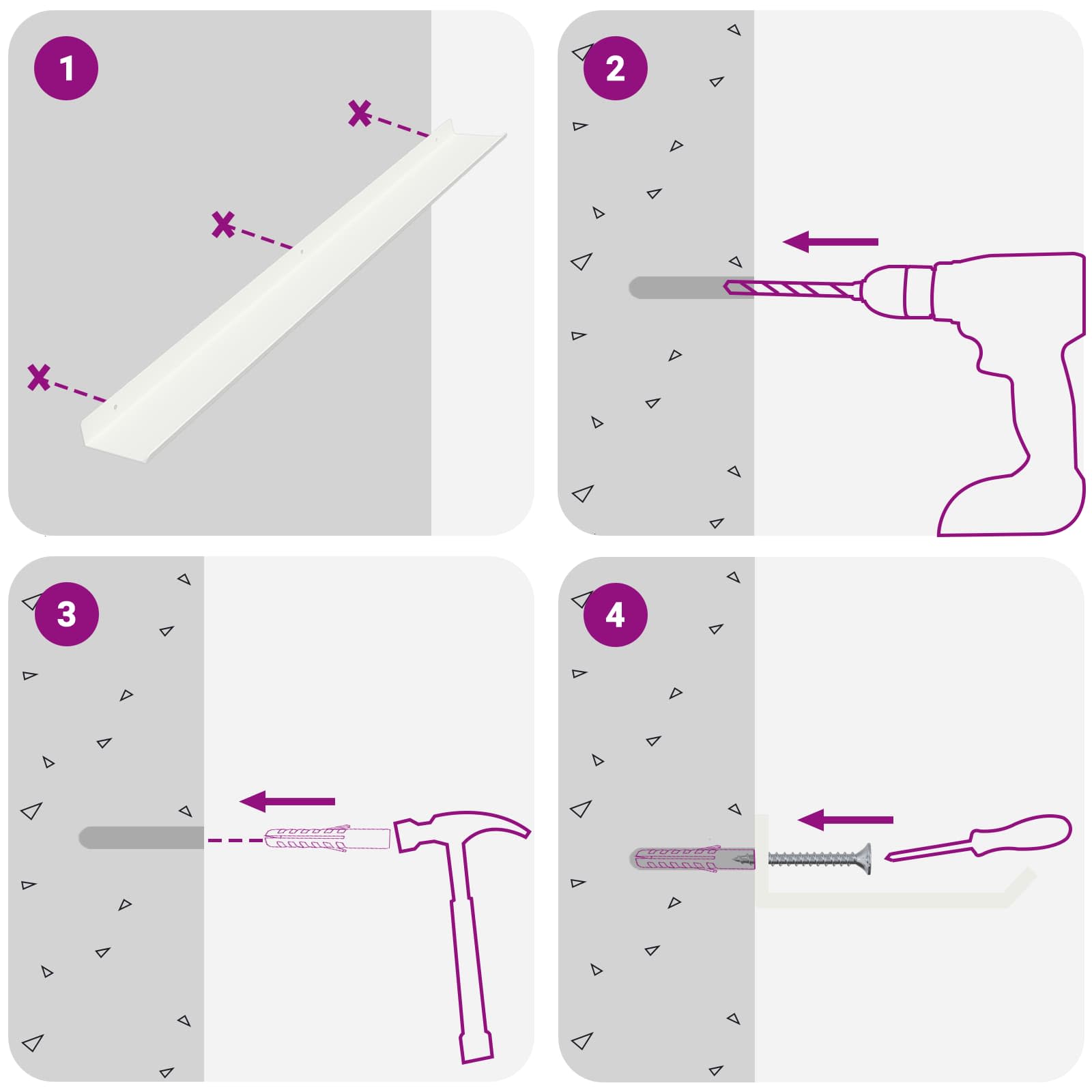 - Screws and plugs for inside the wall are not included We advise to find and use screws and plugs suitable specifically for your walls