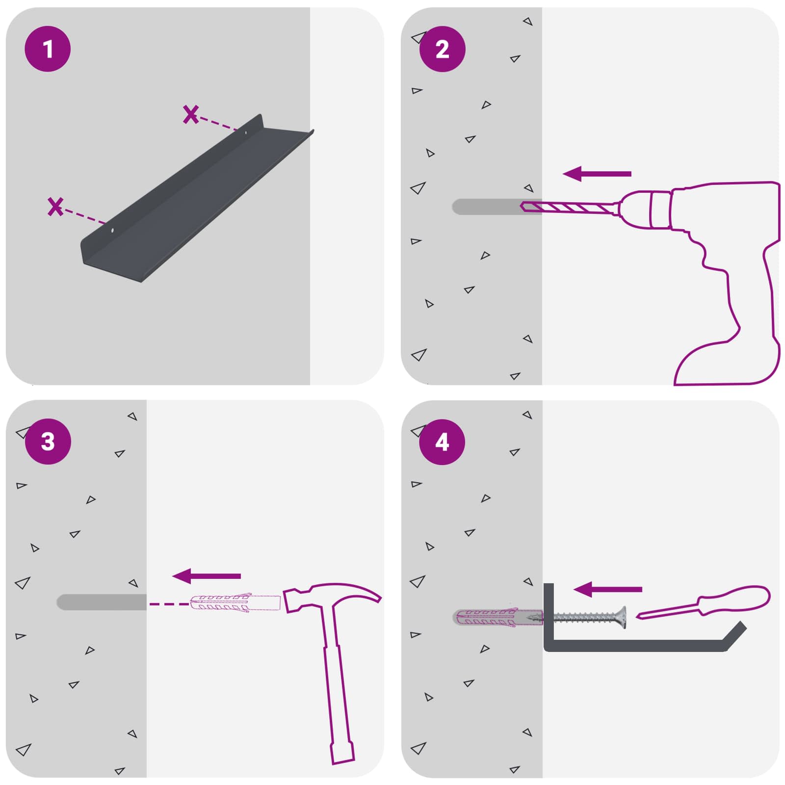 - Screws and plugs for inside the wall are not included We advise to find and use screws and plugs suitable specifically for your walls