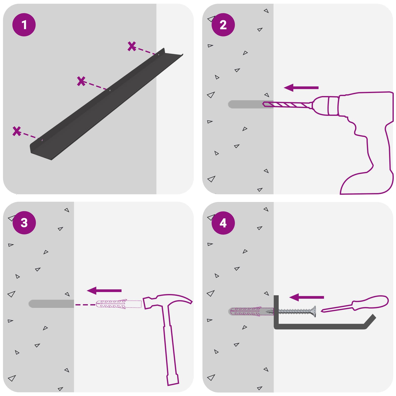 - Screws and plugs for inside the wall are not included We advise to find and use screws and plugs suitable specifically for your walls