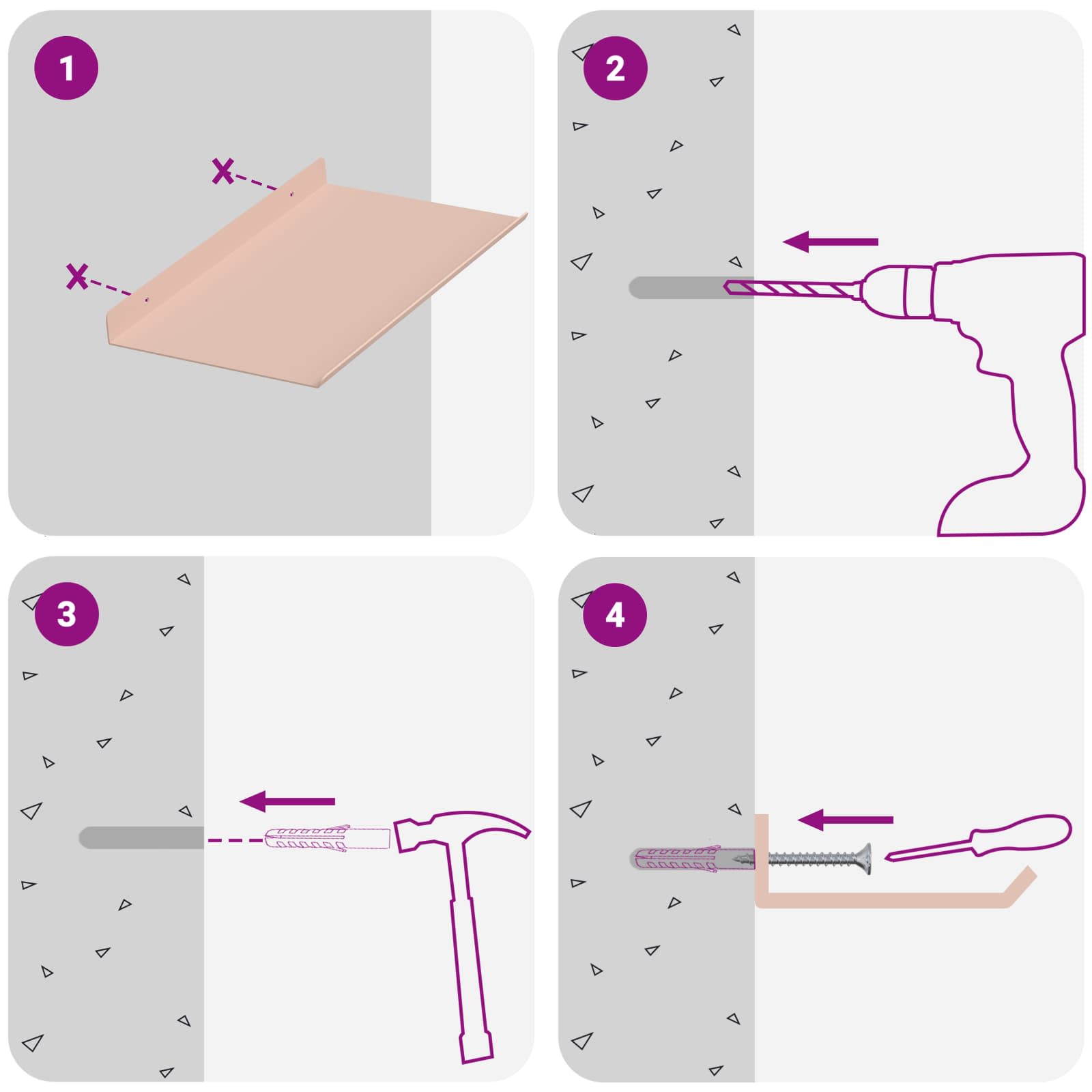 - Screws and plugs for inside the wall are not included We advise to find and use screws and plugs suitable specifically for your walls