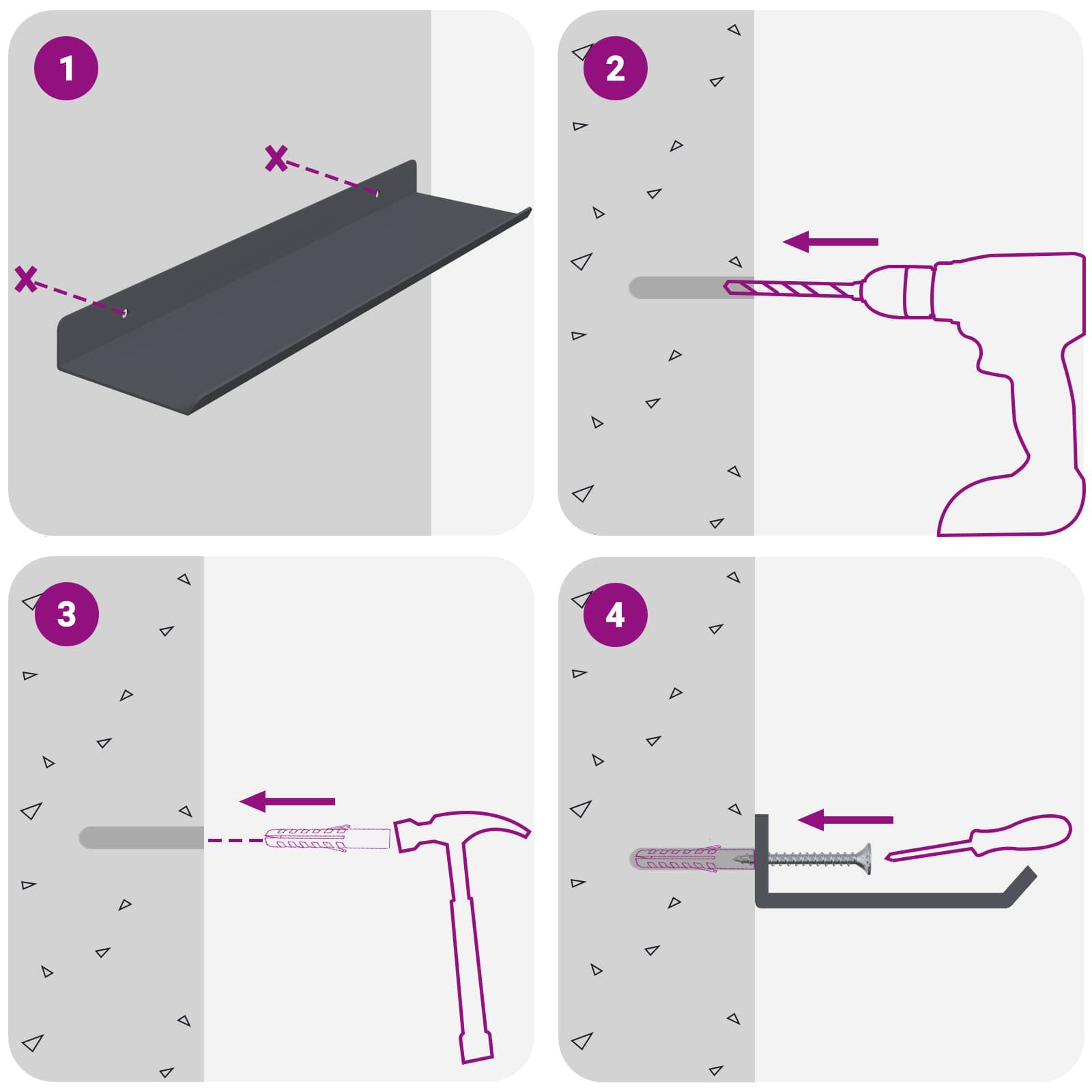 - Screws and plugs for inside the wall are not included We advise to find and use screws and plugs suitable specifically for your walls