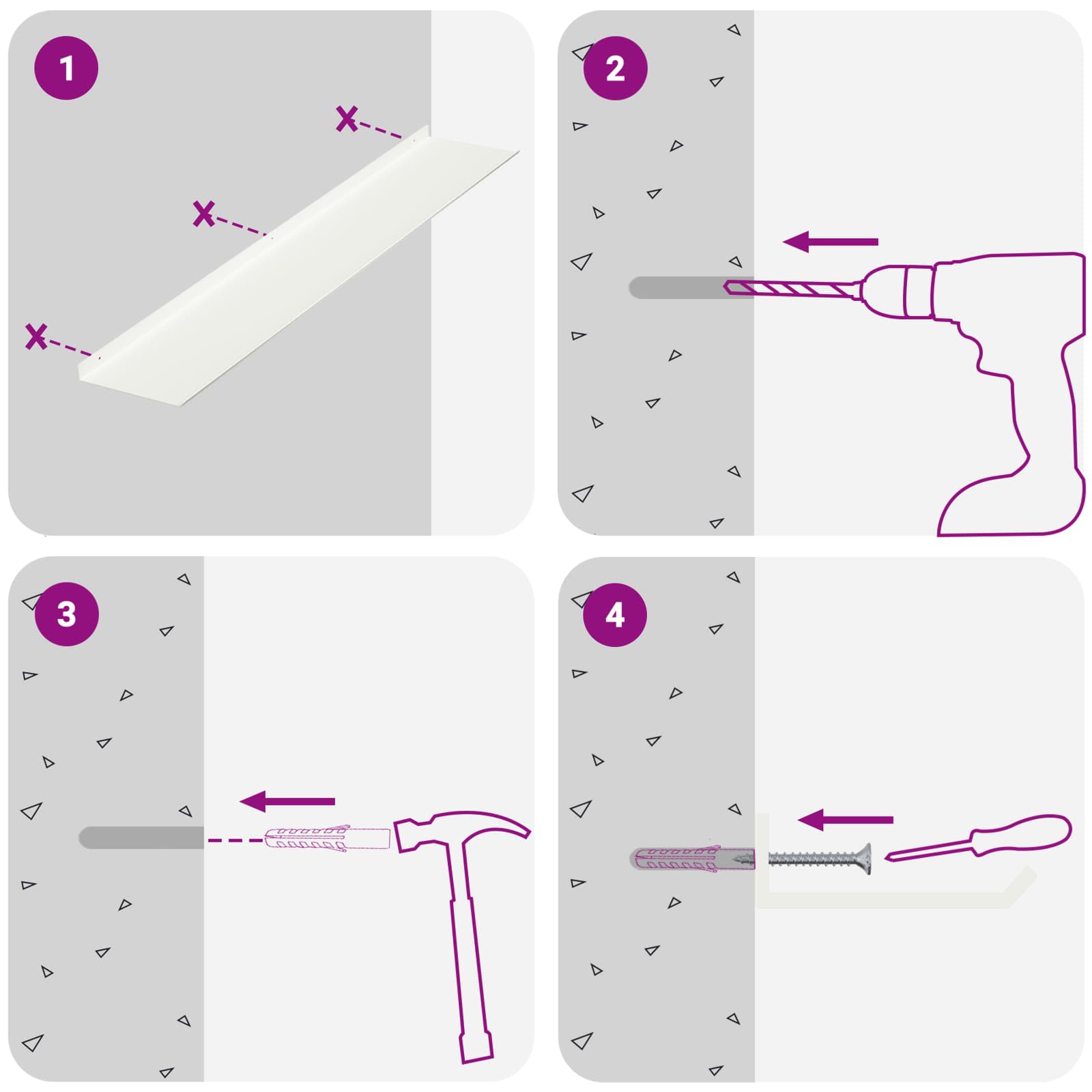 - Screws and plugs for inside the wall are not included We advise to find and use screws and plugs suitable specifically for your walls