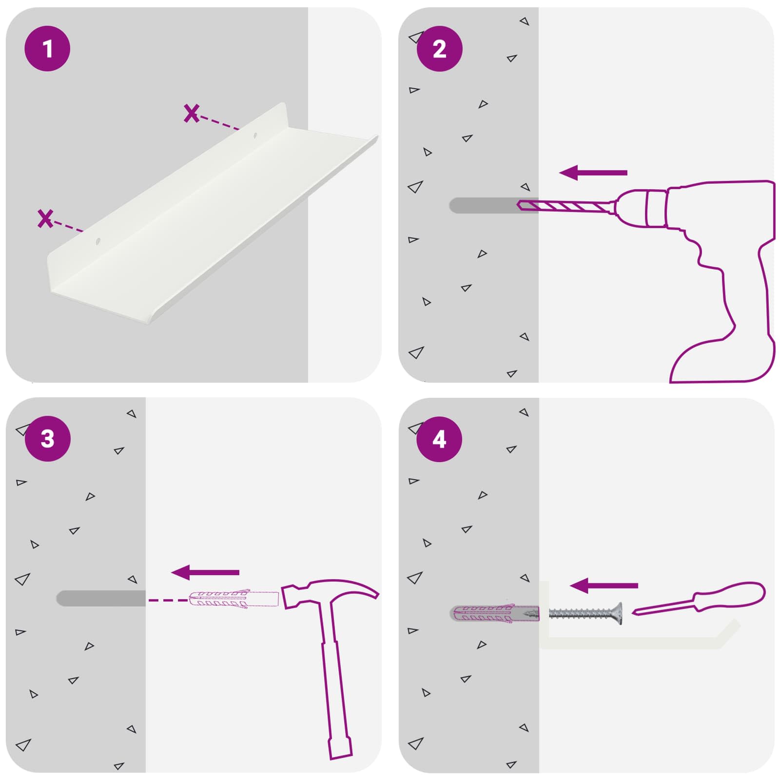 - Screws and plugs for inside the wall are not included We advise to find and use screws and plugs suitable specifically for your walls