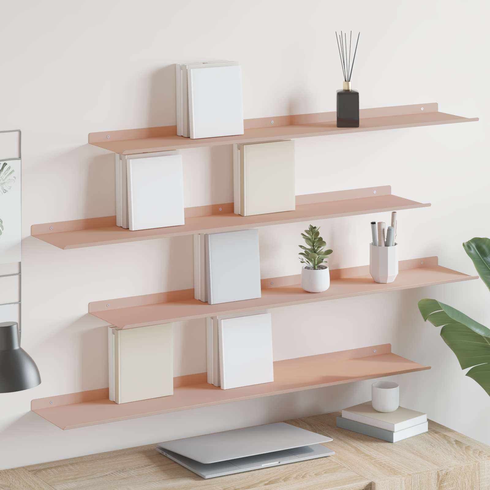 Raft suspendat Pe perete 4 pcs Roz 100 x 18 x 2,5 cm Oțel GartenMobel Dekor