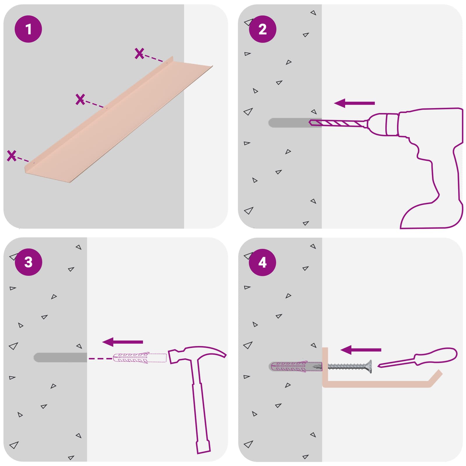 - Instalare simplă Raftul ăsta e conceput să se monteze ușor pe perete cu unelte de bază. Șuruburile nu sunt incluse, așa că alege-le în funcție de peretele tău.