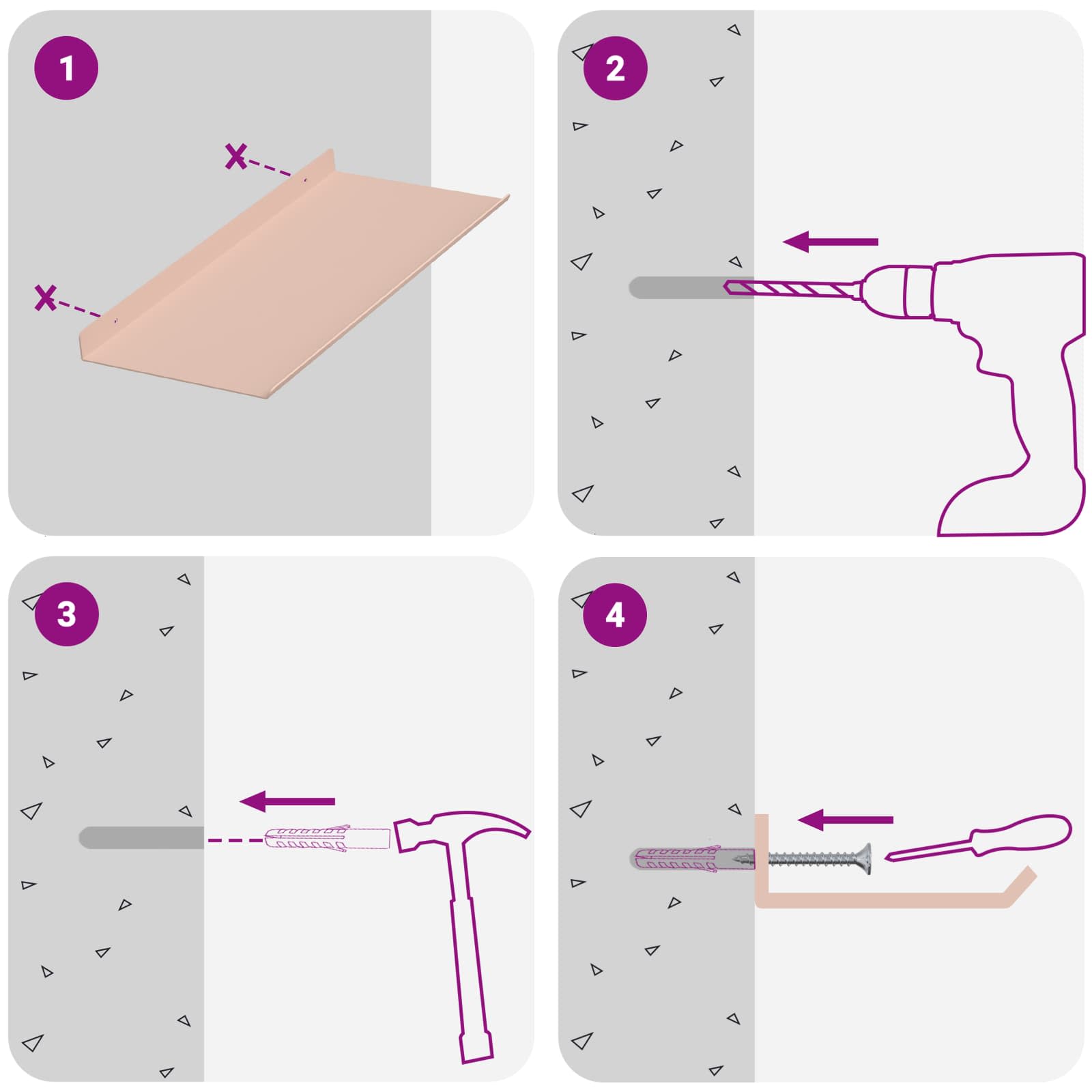 - Instalare simplă Raftul ăsta e conceput să se monteze ușor pe perete cu unelte de bază. Șuruburile nu sunt incluse, așa că alege-le în funcție de peretele tău.