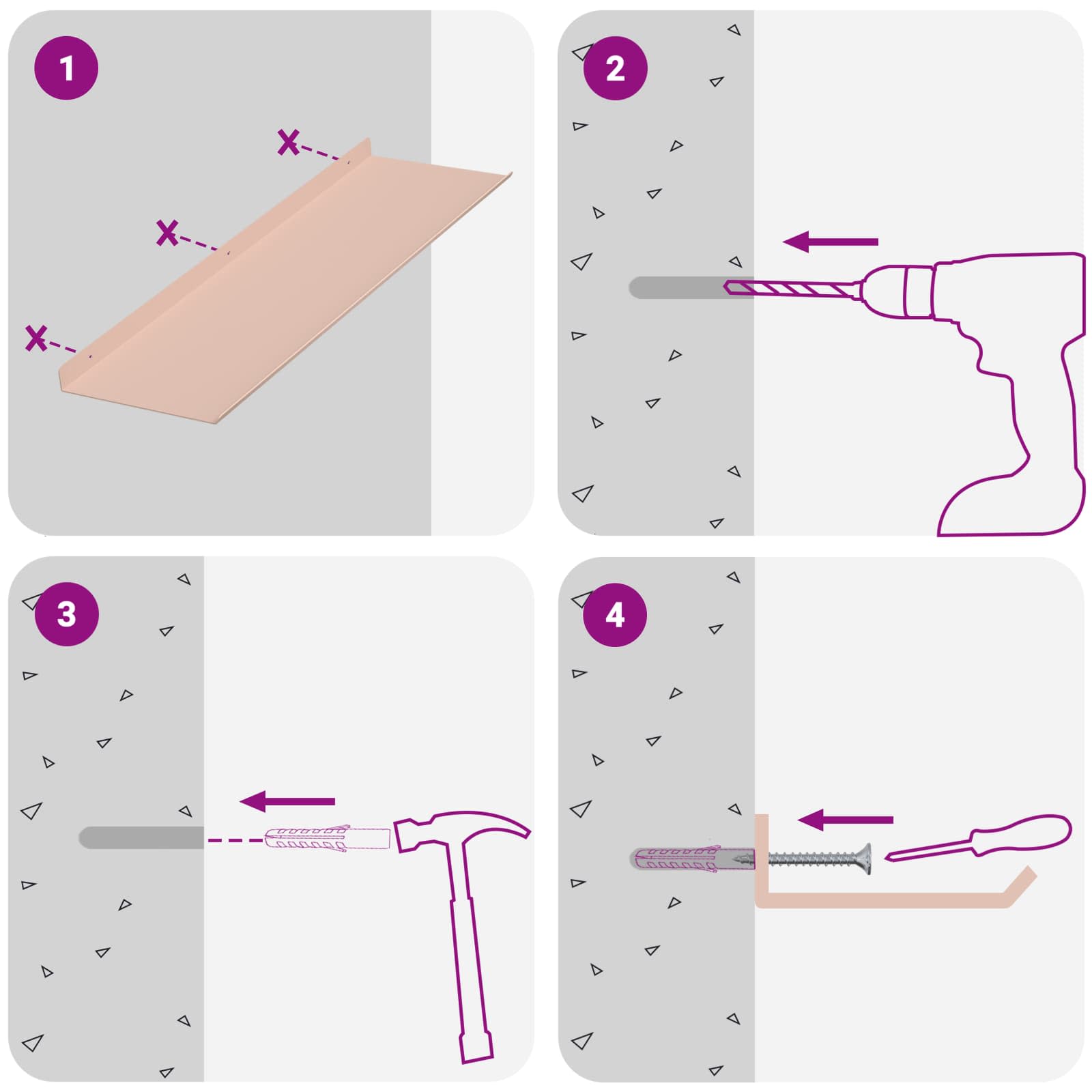 - Screws and plugs for inside the wall are not included We advise to find and use screws and plugs suitable specifically for your walls