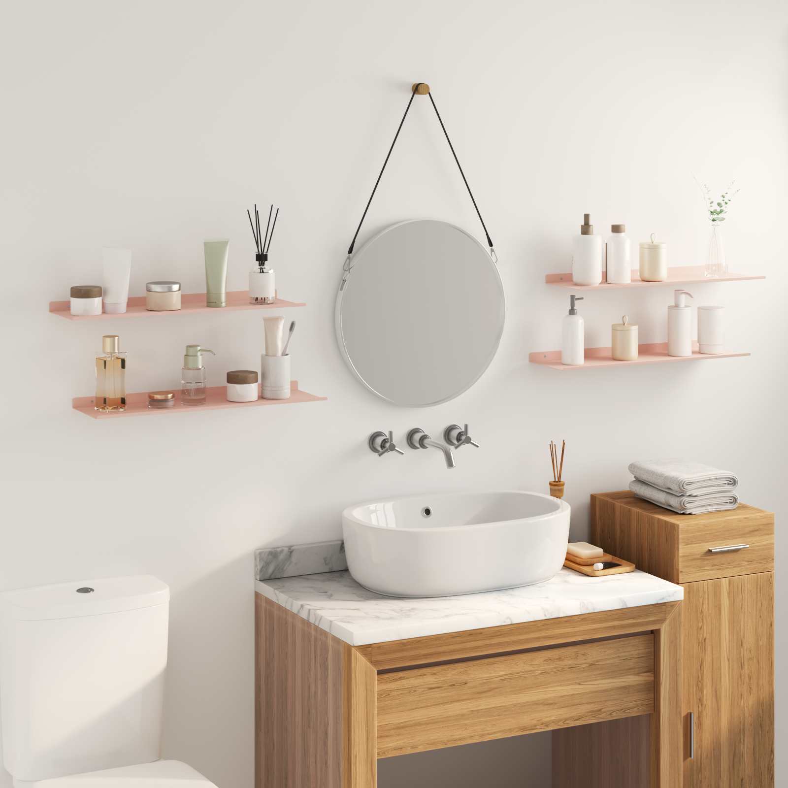 Raft suspendat Pe perete 4 pcs Roz 60 x 18 x 2,5 cm Oțel GartenMobel Dekor