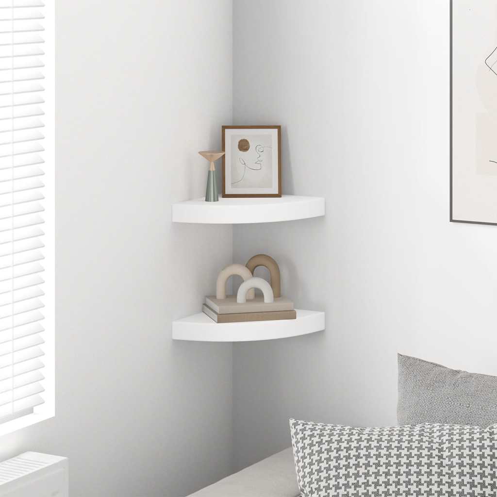 Rafturi colțar de perete, 2 buc., alb, 25 x 25 x 3,8 cm, MDF GartenMobel Dekor