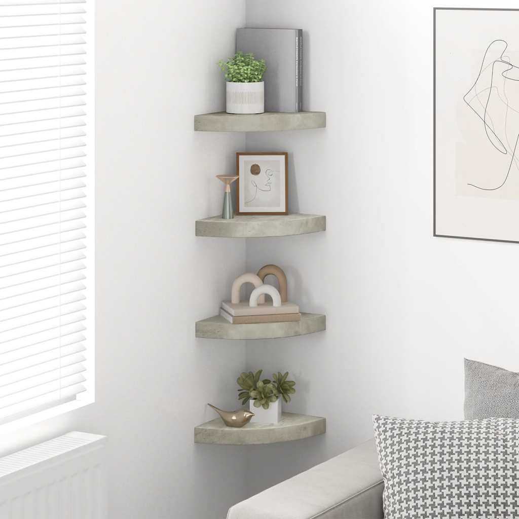 Rafturi de colț de perete, 4 buc., gri beton, 25x25x3,8 cm, MDF GartenMobel Dekor