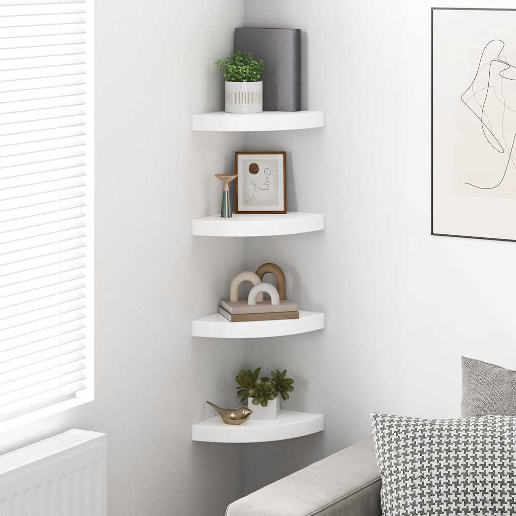 Rafturi de colț plutitoare, 4 buc., alb lucios, 25x25x3,8 cm, MDF GartenMobel Dekor