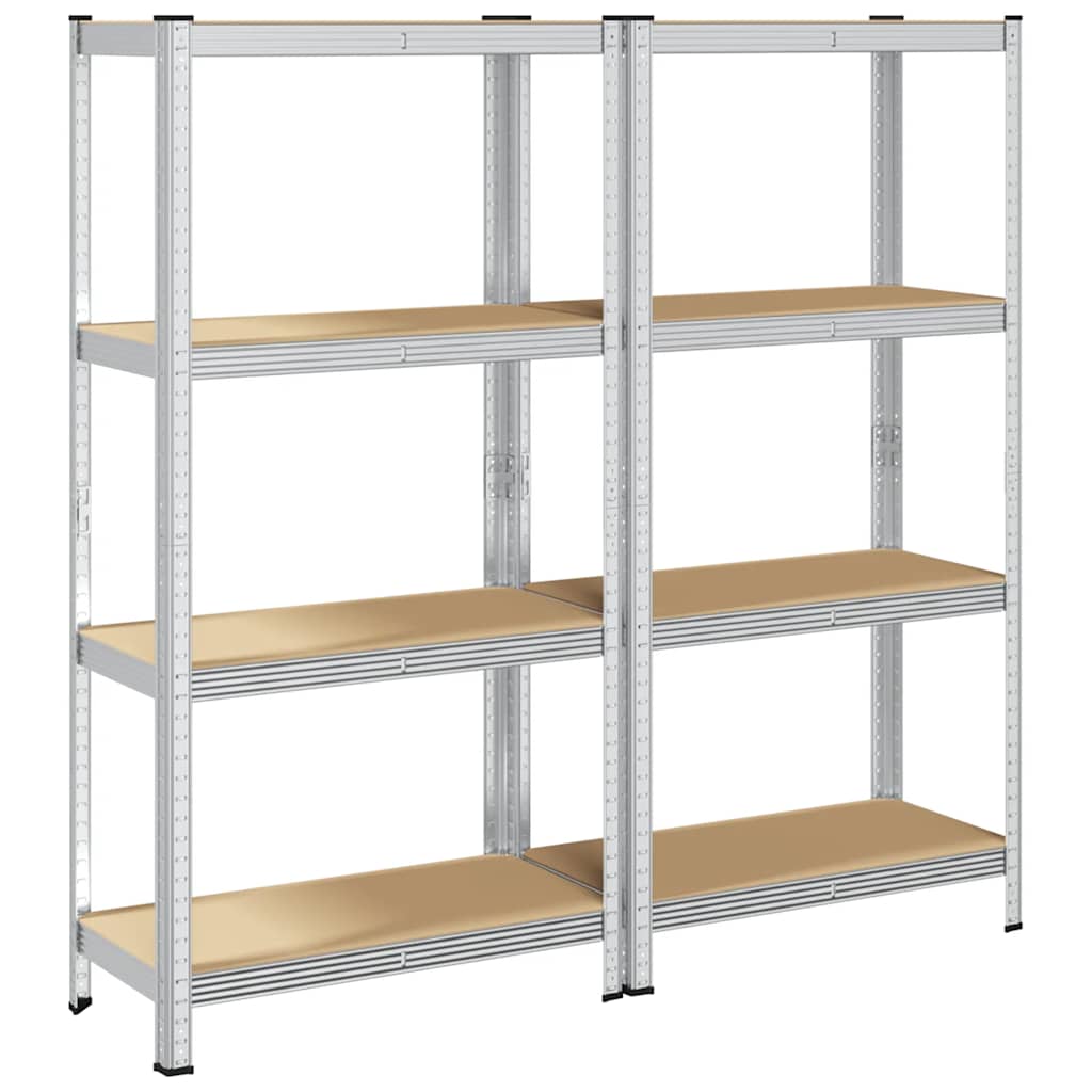 Rafturi de depozitare cu 4 niveluri, 2 buc., argintiu oțel/lemn GartenMobel Dekor