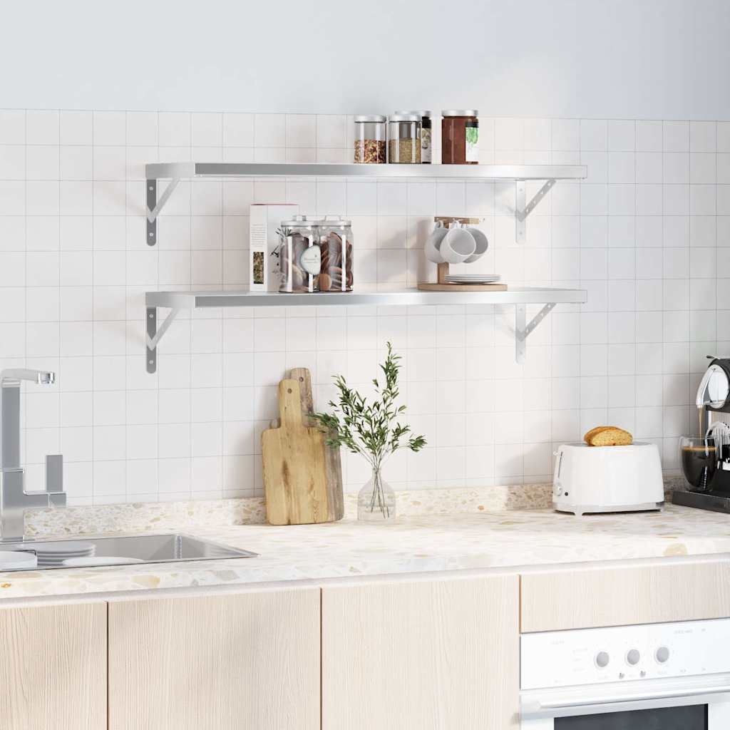 Rafturi de perete 2 buc., 100x30x3 cm, argintiu oțel inoxidabil GartenMobel Dekor