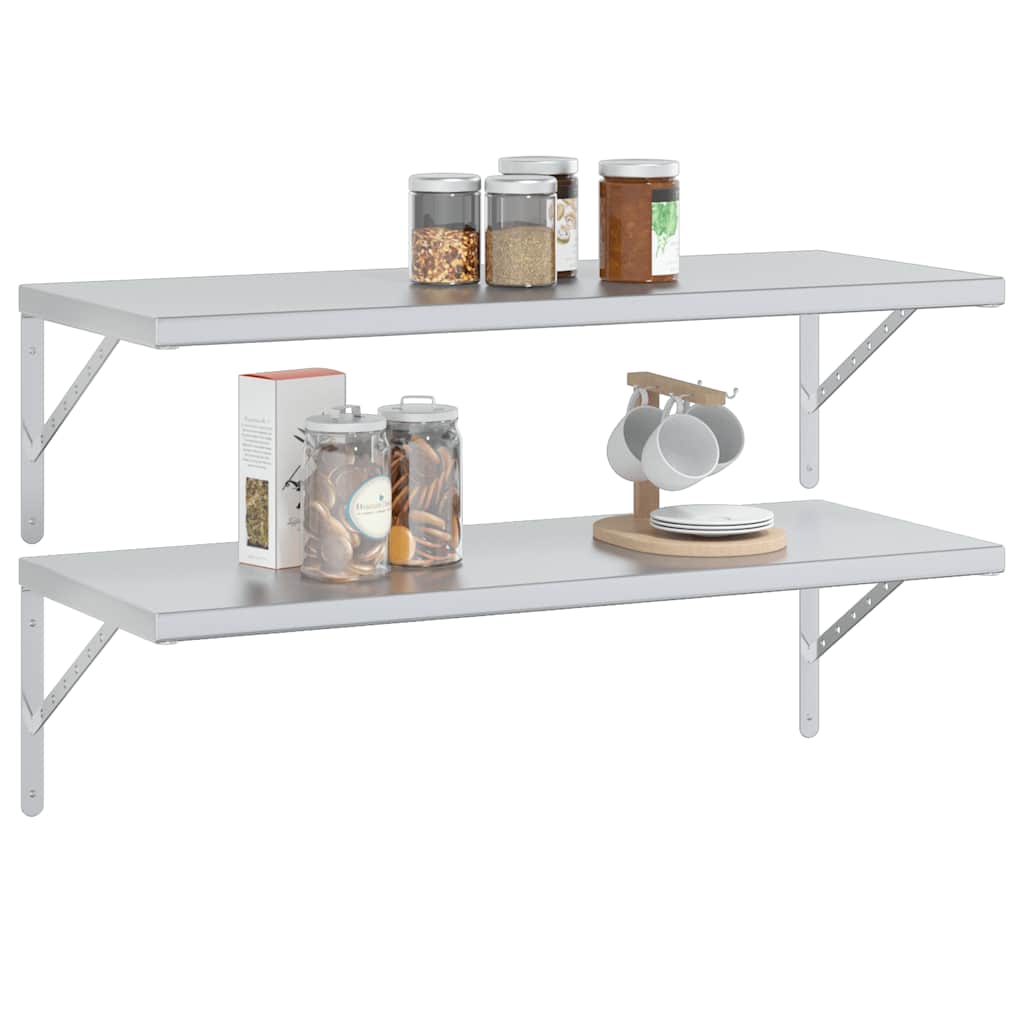 Rafturi de perete 2 buc., 100x40 cm, argintiu oțel inoxidabil GartenMobel Dekor