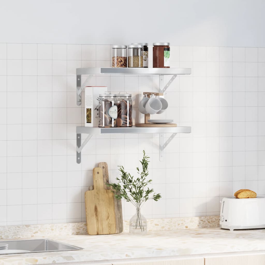 Rafturi de perete, 2 buc., 50x30x3 cm, argintiu oțel inoxidabil GartenMobel Dekor