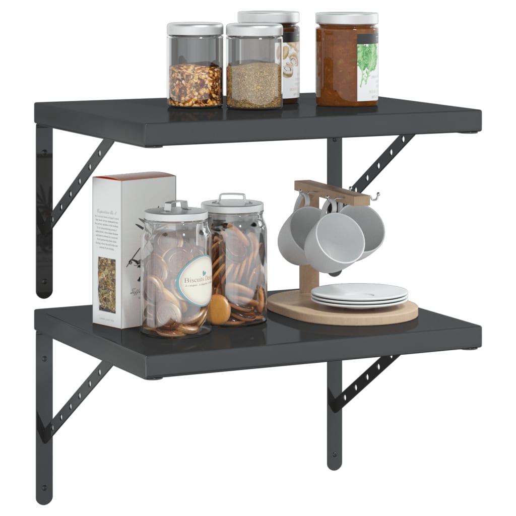 Rafturi de perete, 2 buc., 50x40x3 cm, negru oțel inoxidabil GartenMobel Dekor