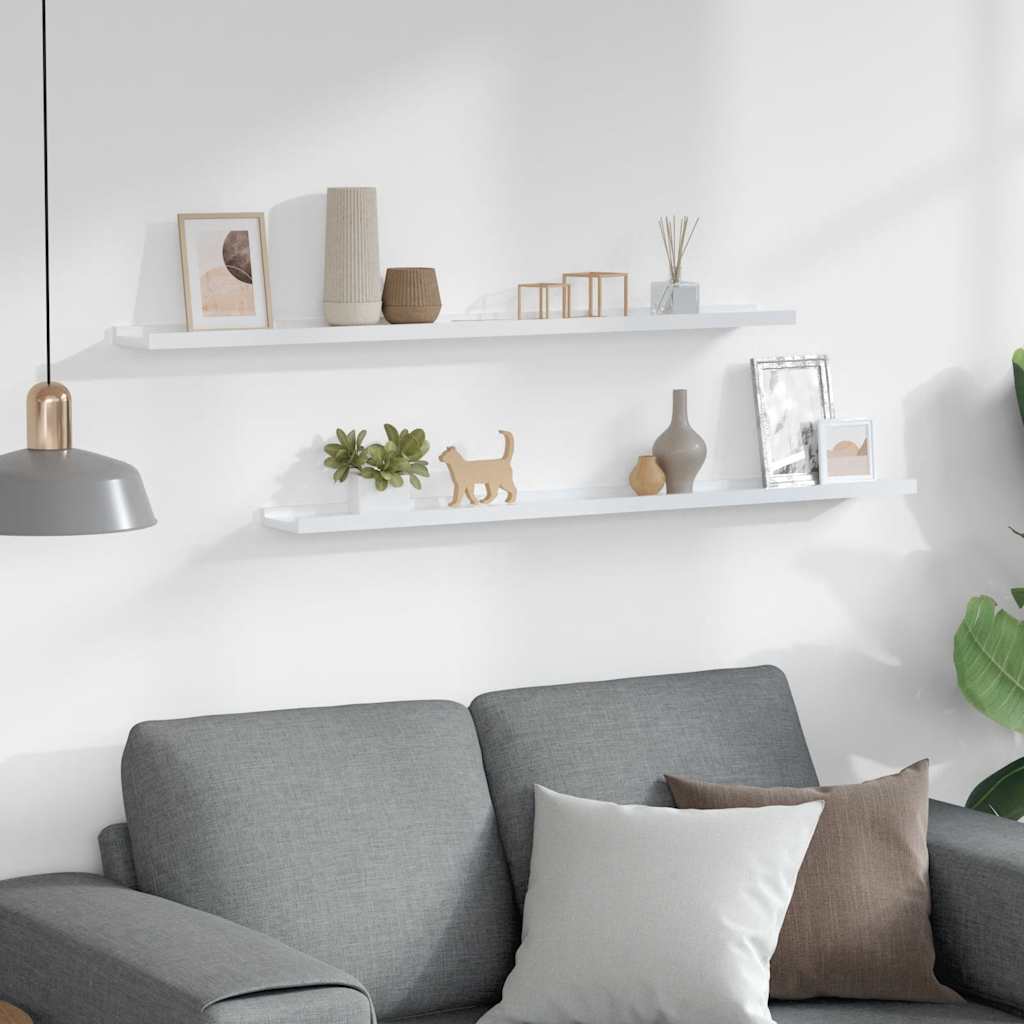 Rafturi de perete, 2 buc., alb extralucios, 100x9x3 cm GartenMobel Dekor
