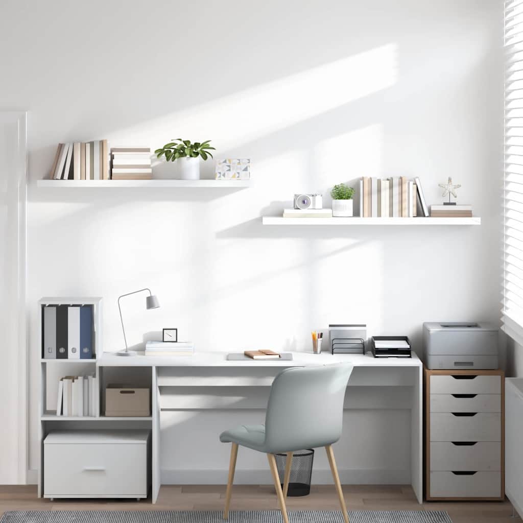 Rafturi de perete, 2 buc., alb extralucios, 120x23,5x3,8 cm MDF GartenMobel Dekor
