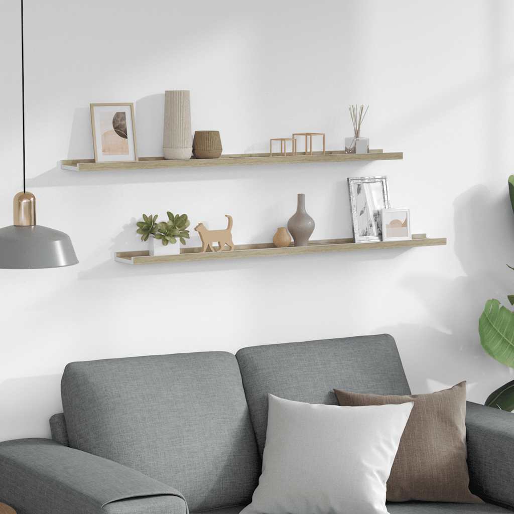 Rafturi de perete, 2 buc., alb și stejar sonoma, 100x9x3 cm GartenMobel Dekor