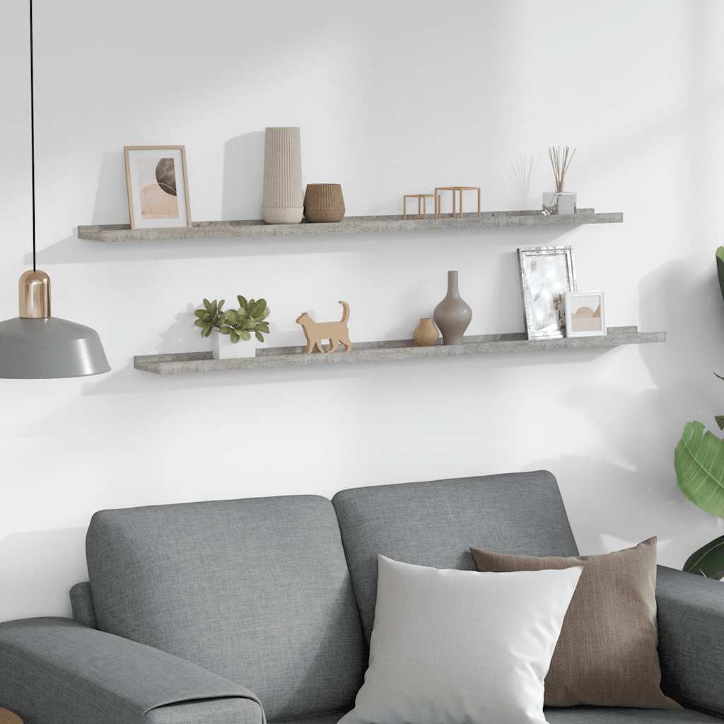 Rafturi de perete, 2 buc., gri beton, 115x9x3 cm GartenMobel Dekor