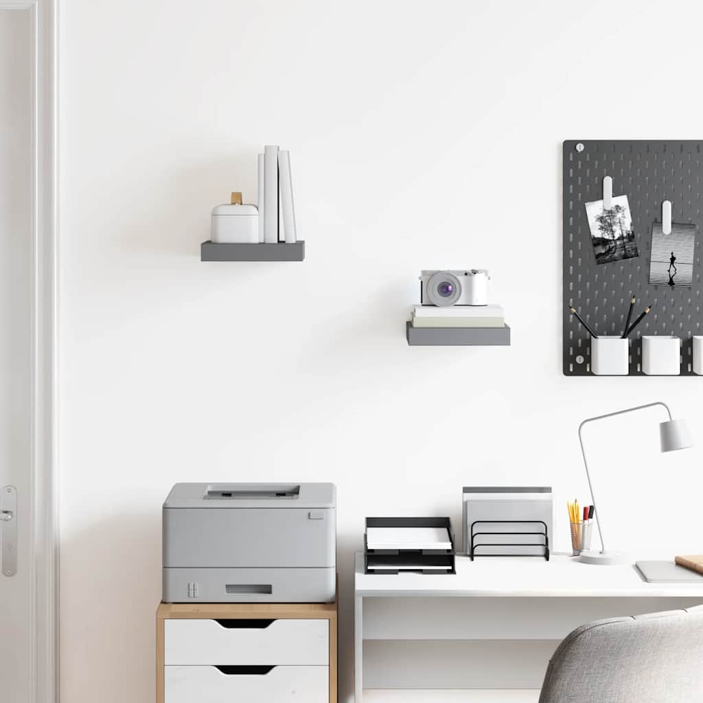 Descriere Rafturi perete, 2 buc., gri extralucios,
