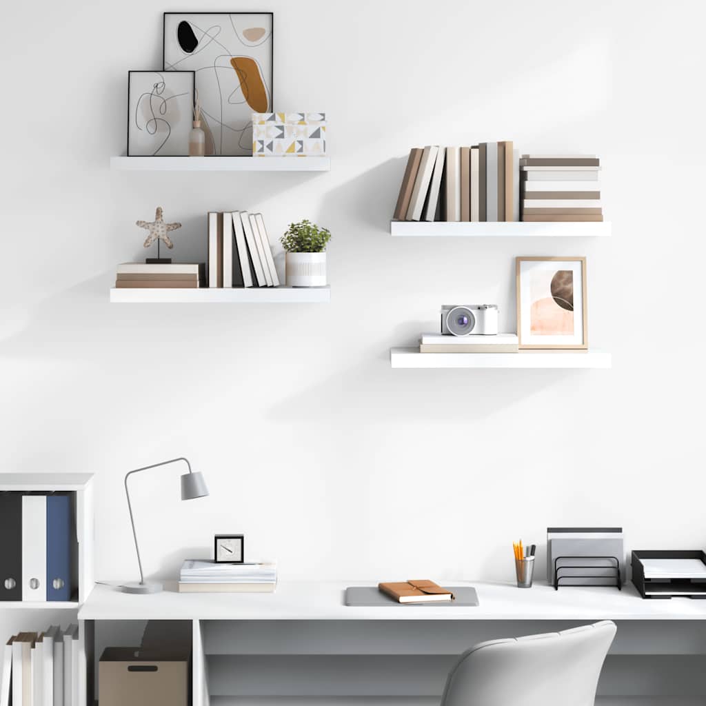 Rafturi de perete, 4 buc., alb extralucios, 60x23,5x3,8 cm, MDF GartenMobel Dekor