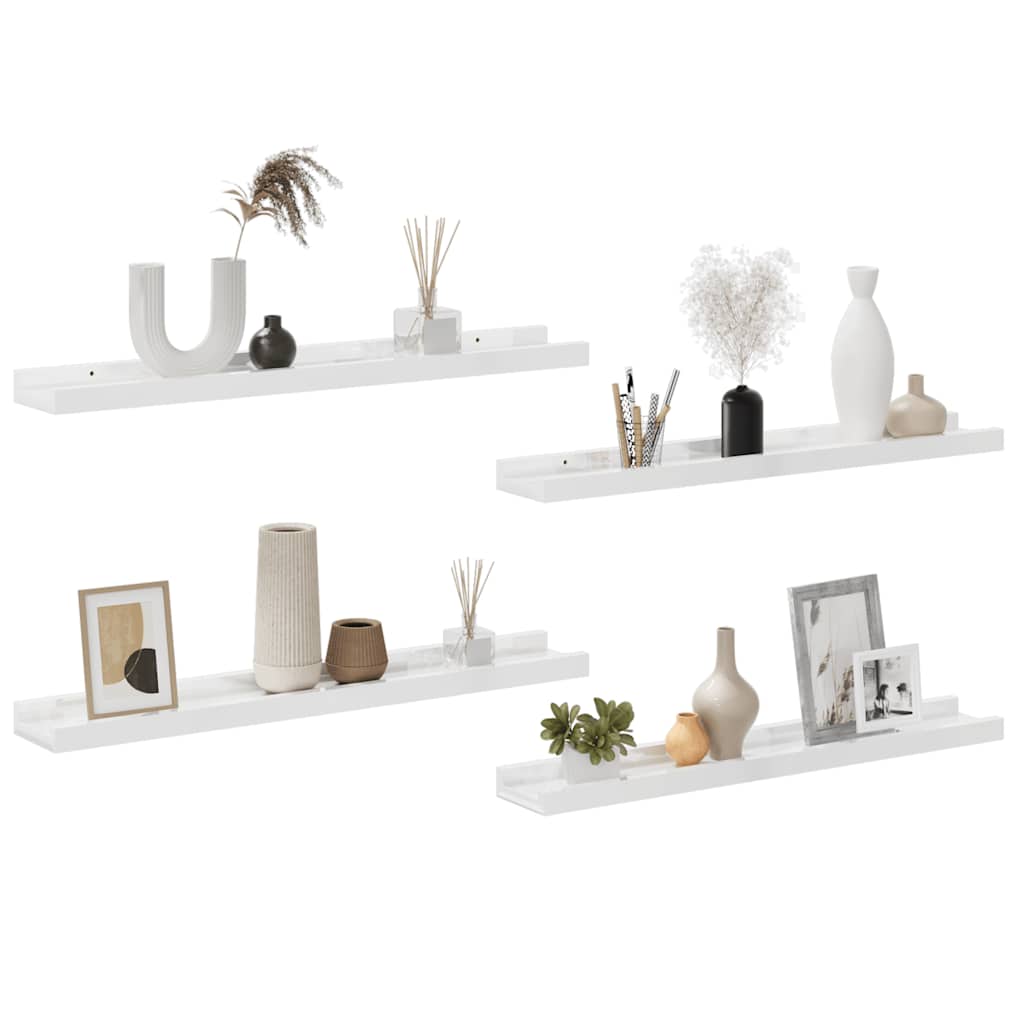 Rafturi de perete, 4 buc., alb extralucios, 60x9x3 cm GartenMobel Dekor