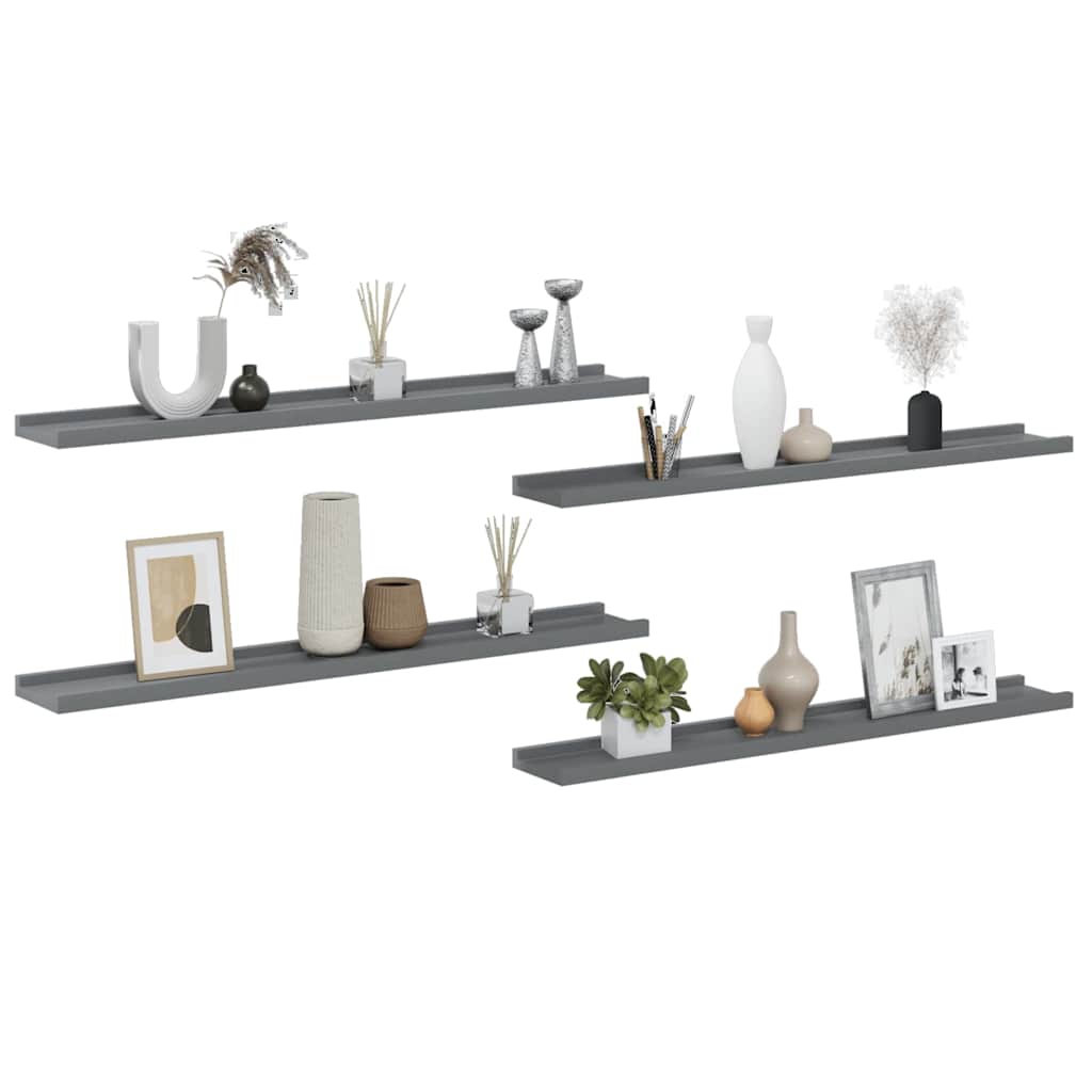 Descriere Rafturi perete, 4 buc., gri, 80x9x3