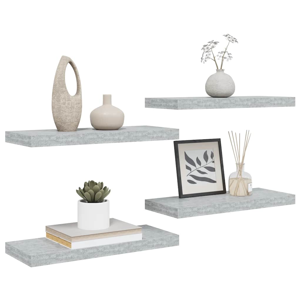 Rafturi de perete, 4 buc., gri beton, 60x23,5x3,8 cm, MDF GartenMobel Dekor