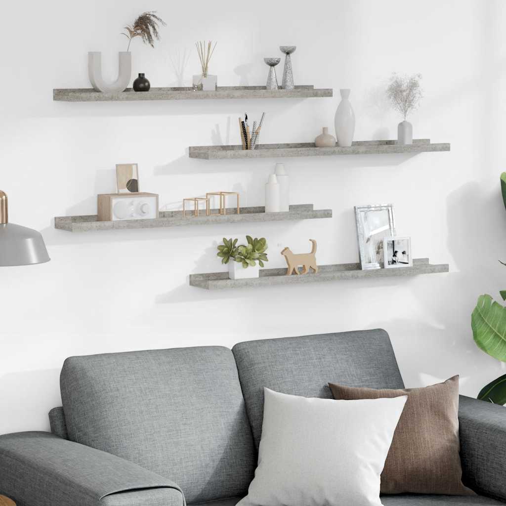 Rafturi de perete, 4 buc., gri beton, 80x9x3 cm GartenMobel Dekor