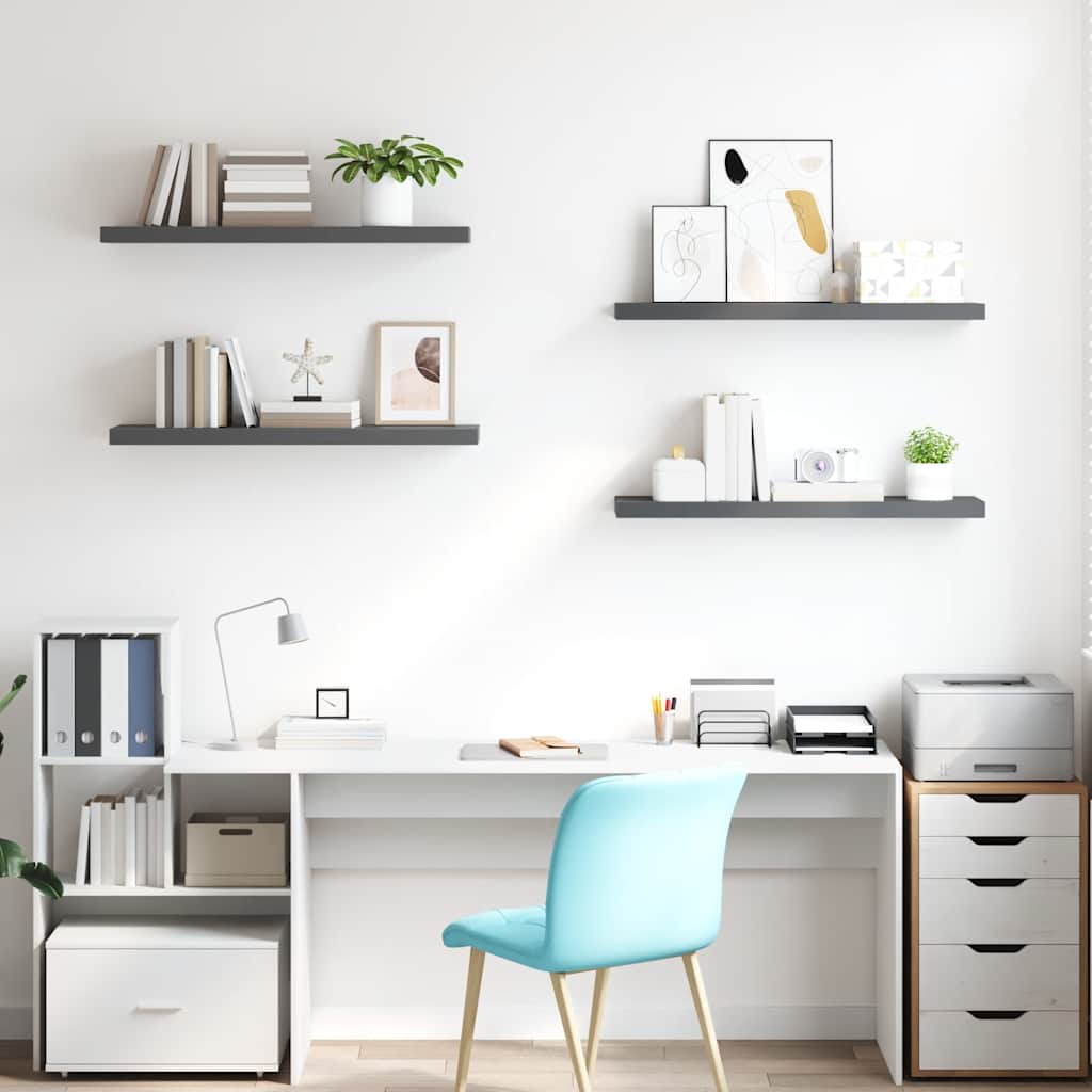 Rafturi de perete, 4 buc., gri extralucios, 90x23,5x3,8 cm, MDF GartenMobel Dekor