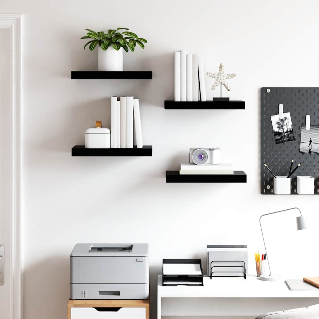 Rafturi de perete, 4 buc., negru extralucios, 40x23x3,8 cm, MDF GartenMobel Dekor