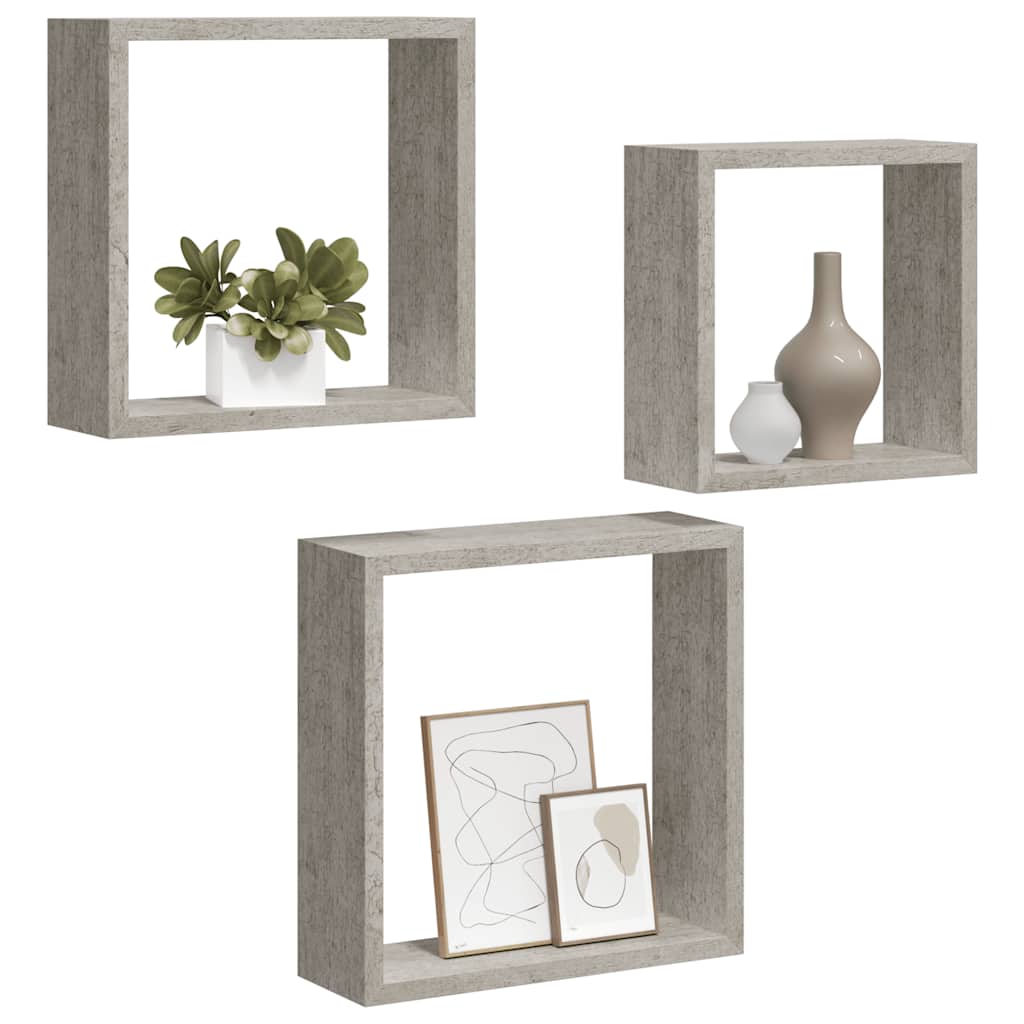 Rafturi de perete cub, 3 buc., gri beton GartenMobel Dekor
