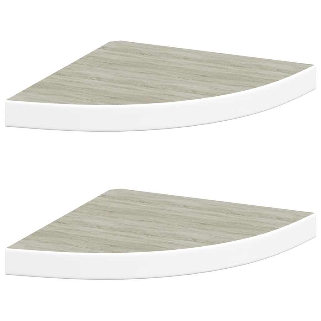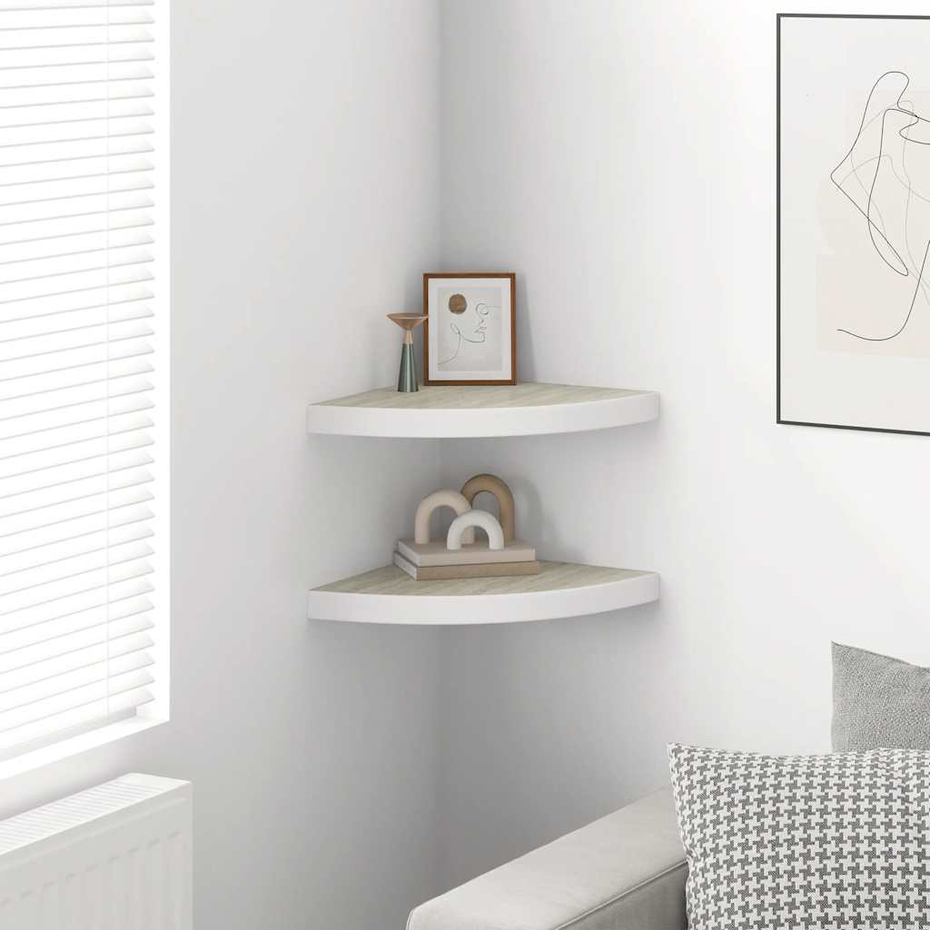 Rafturi de perete de colț 2 buc. stejar și alb 35x35x3,8 cm MDF GartenMobel Dekor