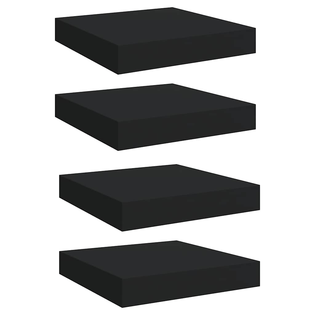 Rafturi de perete suspendate, 4 buc., negru, 23x23,5x3,8 cm MDF GartenMobel Dekor