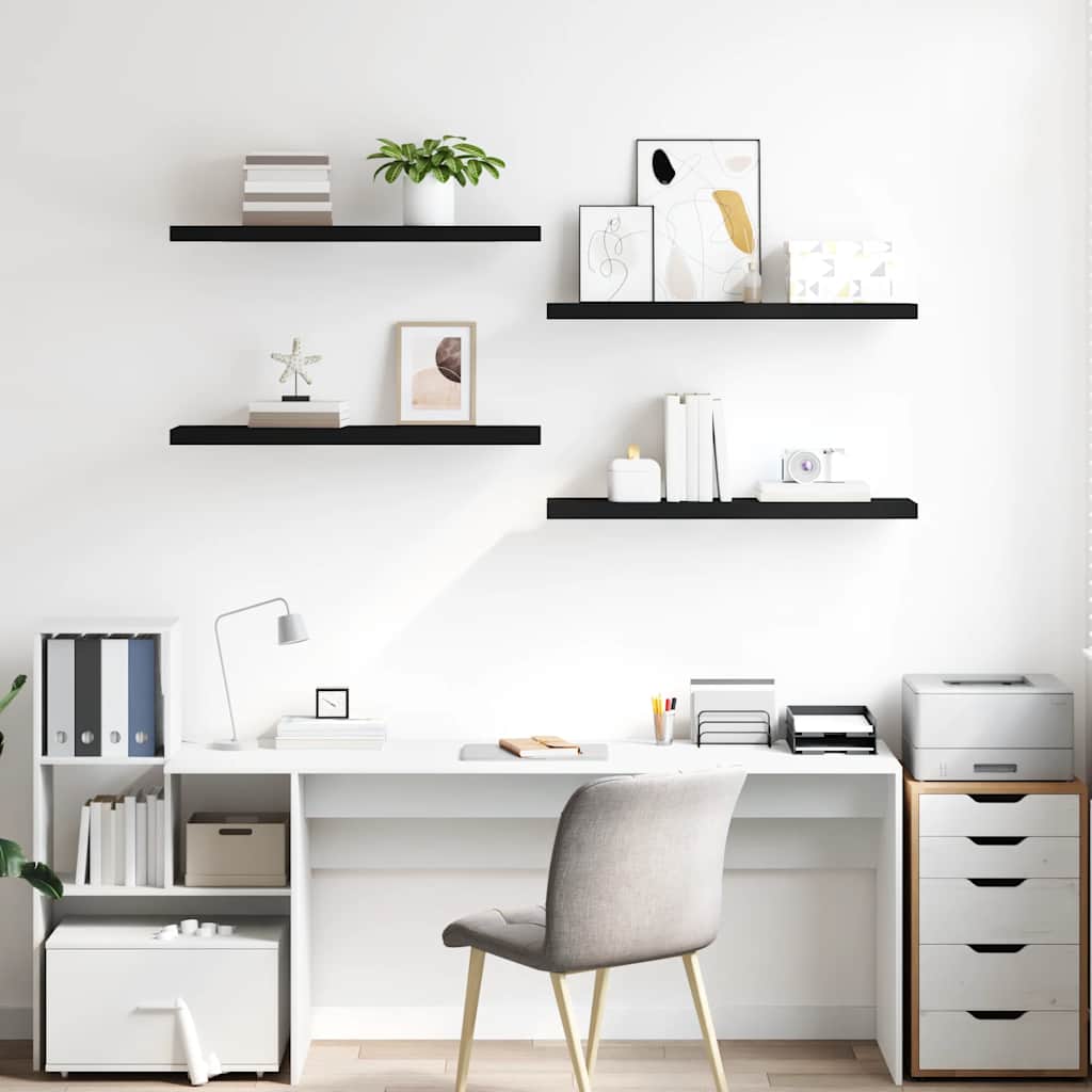Rafturi de perete suspendate 4 buc., negru, 90x23,5x3,8 cm, MDF GartenMobel Dekor