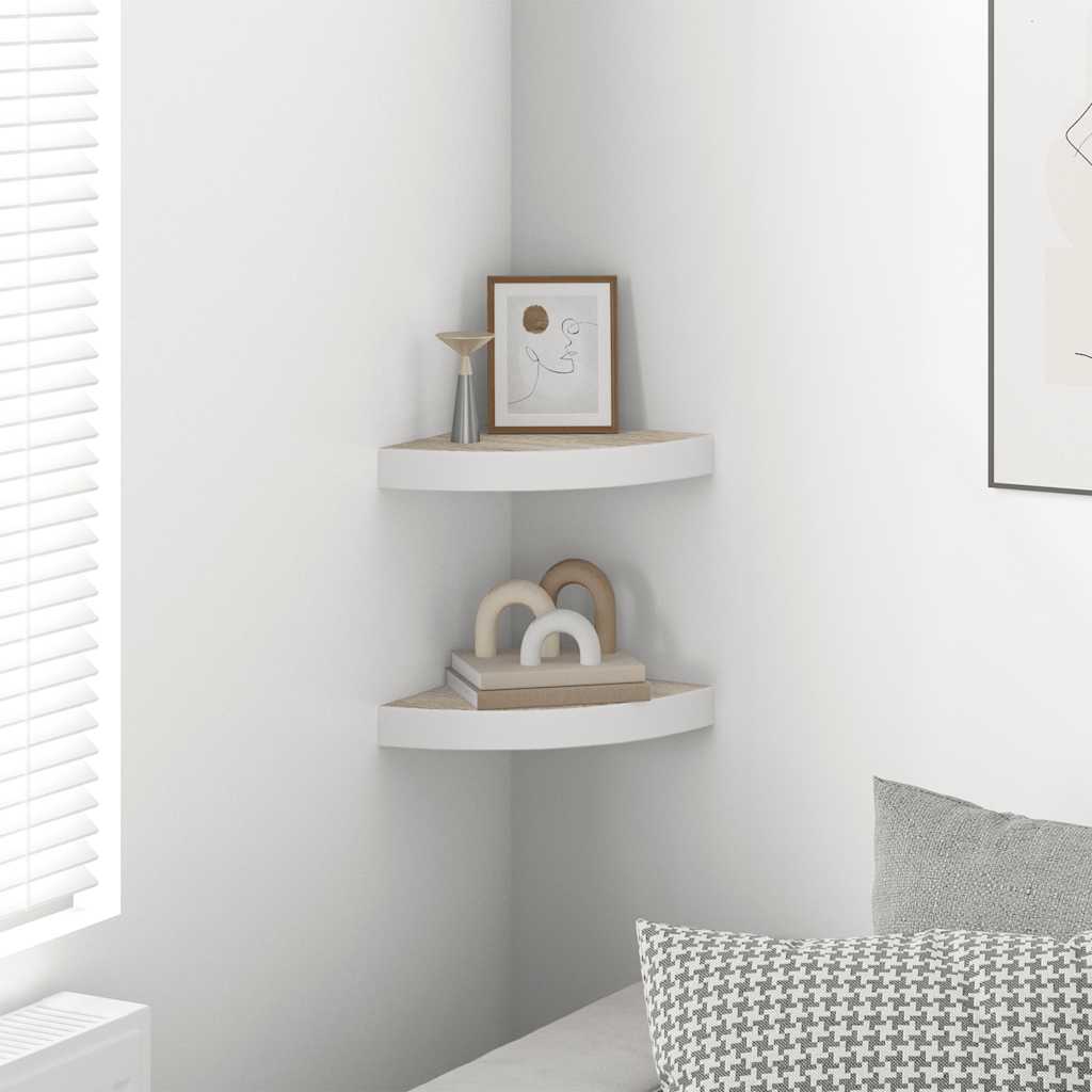 Rafturi perete de colț, 2 buc., stejar și alb, 25x25x3,8cm, MDF GartenMobel Dekor