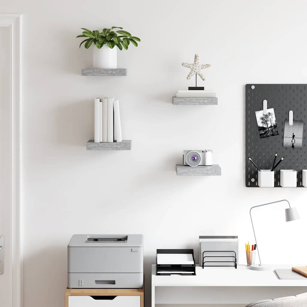 Rafturi perete suspendate 4 buc. gri beton 23x23,5x3,8 cm MDF GartenMobel Dekor