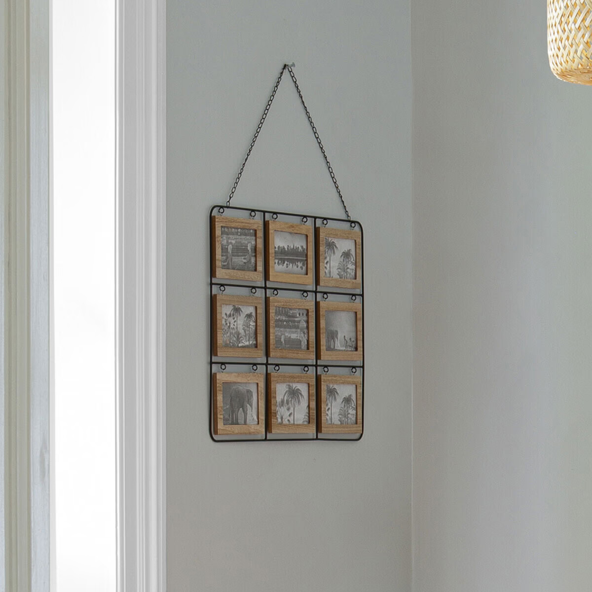 Pastreaza amintirile preferate la vedere cu rama foto pentru 18 poze Atmosphera Vivek. Cu un design decorativ, in nuanta maro natur si cu cadru metalic, aceasta rama foto multipla este alegerea potrivita pentru living, hol sau dormitor. Structura sa dubla permite expunerea a pana la 18 fotografii, oferind un efect vizual elegant si bine organizat.