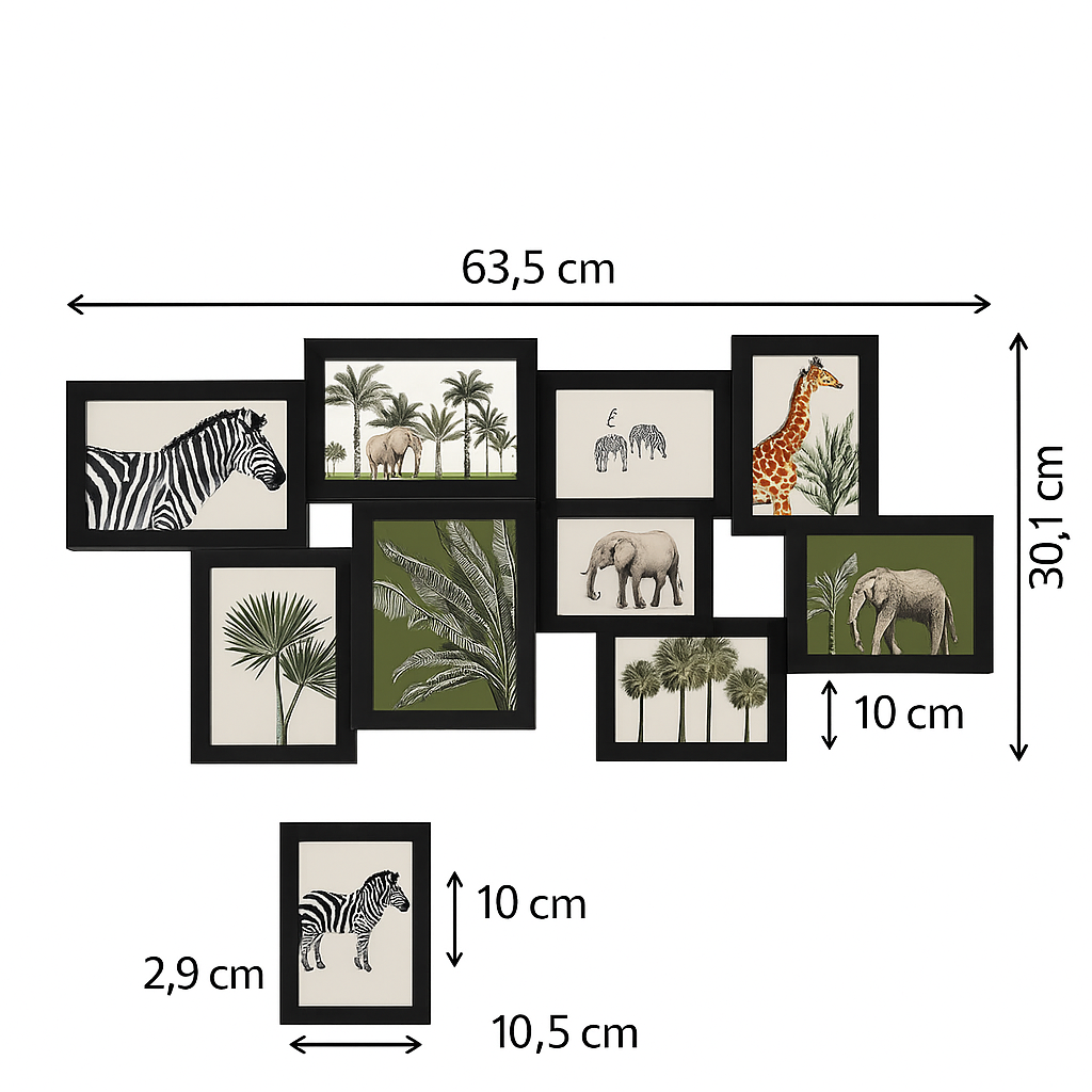 Specificatii tehnice: Marca: Atmosphera Model: Cali Culoare: Negru Dimensiuni produs: 63.5 x 2.9 x 30.1 cm Greutate produs: 0.46 kg Material structura: Polipropilena (PP) Material geam: Sticla Material finisaj: Hartie Orientare montaj: Verticala Dimensiuni inserturi foto: 10 x 15 cm Numar poze: 8 Scurta descriere: Rama colaj Atmosphera Cali este solutia ideala pentru a pastra si expune cele mai dragi amintiri. Cu un design asimetric si modern, cele opt rame de dimensiuni variate creeaza un efect vizual armonios. Se potriveste perfect intr-un decor minimalist si poate fi pusa in valoare deasupra unui bufet sau a unei console. Caracteristici principale: 8 spatii pentru fotografii Montaj vertical pe perete Design asimetric, modern Materiale usoare si rezistente Ideal pentru living, dormitor sau birou Accent decorativ in stil contemporan