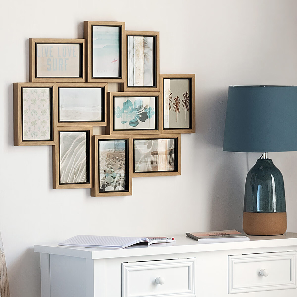 Rama foto colaj Atmosphera Kyle pentru 10 poze, MDF si sticla, 58x49 cm, lemn natur