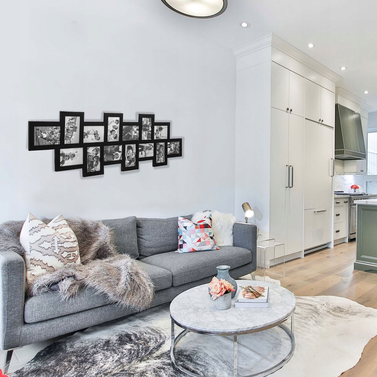 Rama foto de perete, colaj de 14 fotografii, 36x118cm, negru Household NewTrend