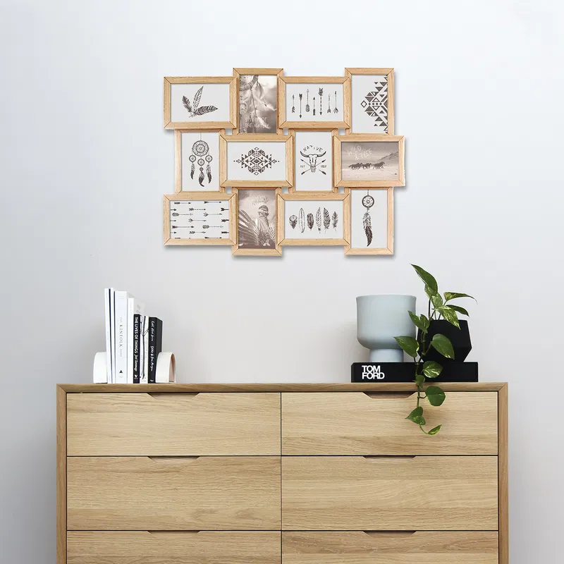 Rama foto multipla Atmosphera Mia pentru 12 poze 10x15 cm, MDF natur