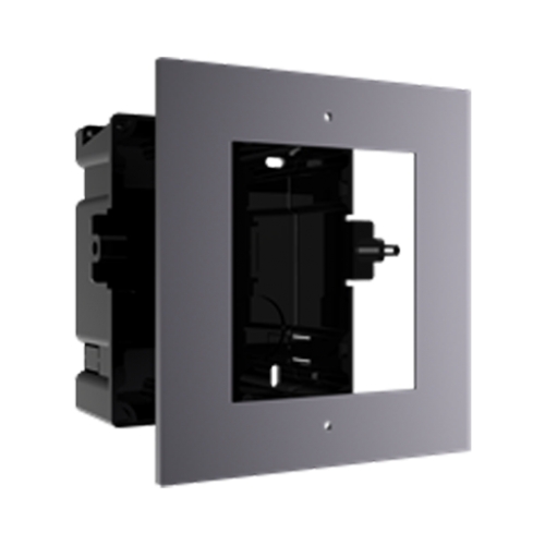 Se utilizează pentru montarea încastrată a unui modul exterior de interfon Hikvision, contribuind la protecția și fixarea corectă a echipamentului. Este recomandată în instalații unde se dorește un montaj elegant, compact și bine integrat în fațadă sau perete.