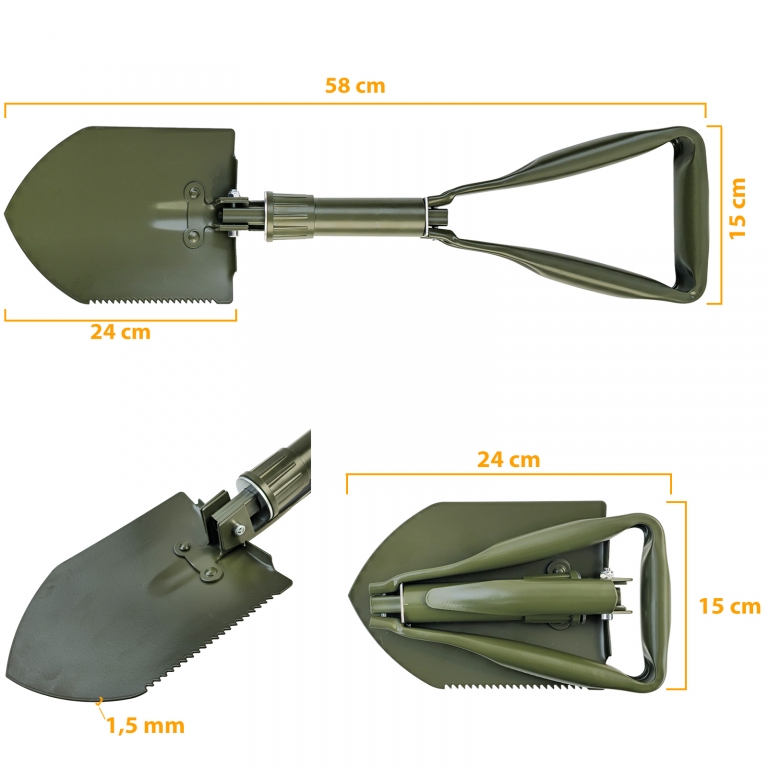RAMROXX Lopată Pliabilă de Supraviețuire Verde Oliv Lopată Săpăligă Fierăstrău inclusiv. Pungă