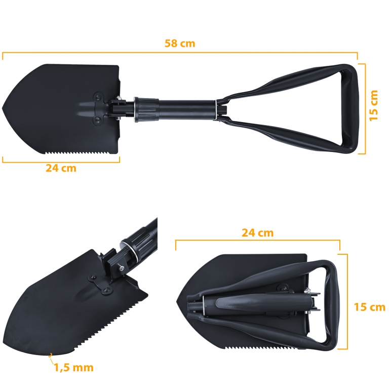 RAMROXX Lopată Pliabilă Supraviețuire Neagră Lopată Săpăligă Fierăstrău incl. Pungă Performance AutoTuning
