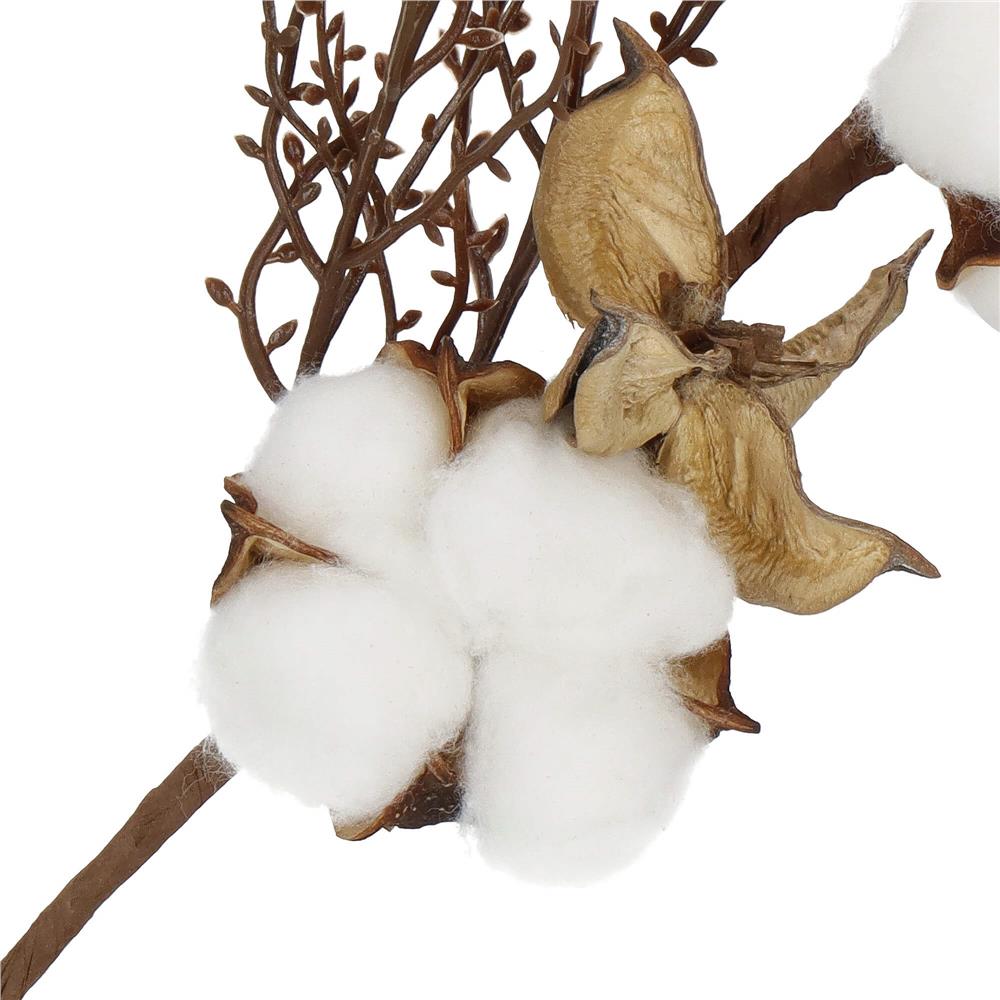 Ramura decorativa de Craciun cu bumbac si plante uscate, 37 cm, alb maro