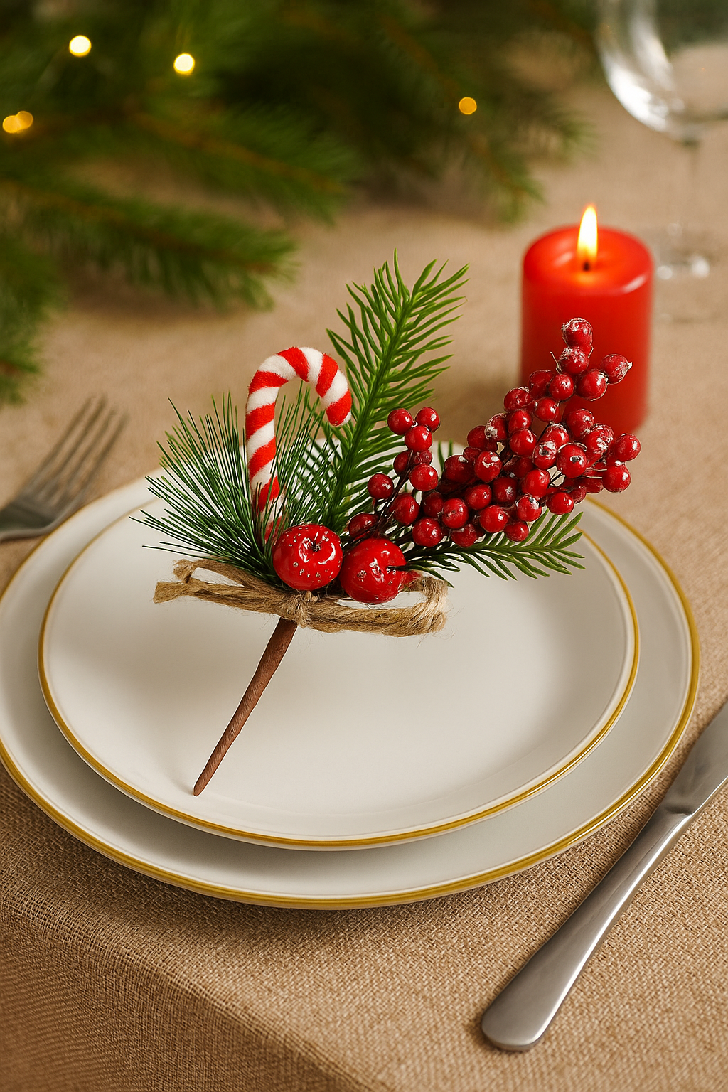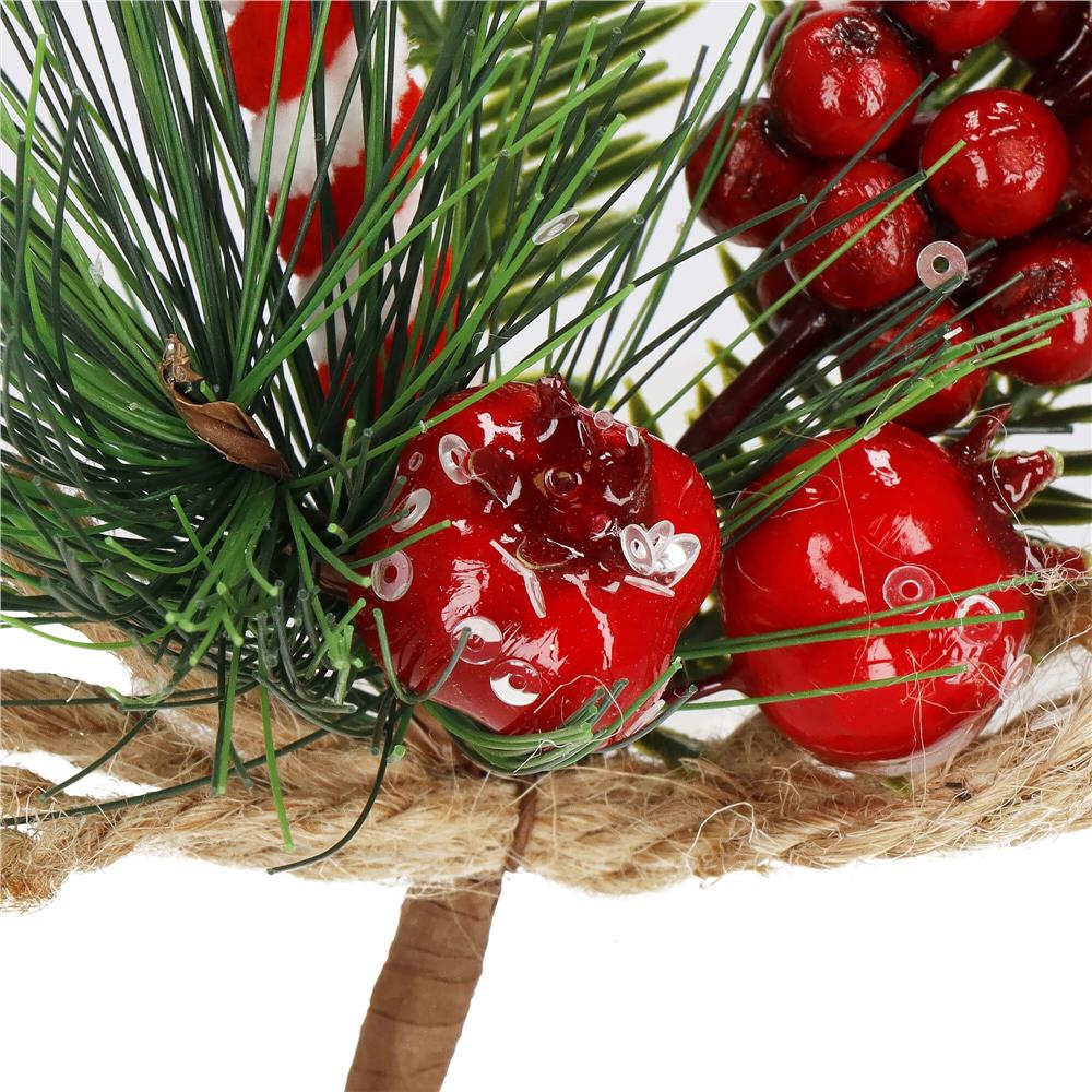 Adauga un plus de farmec sarbatorilor cu aceasta ramura decorativa de Craciun, realizata intr-un stil vesel si rustic. Combinatia dintre fructe rosii decorative, acadeaua in dungi, crengutele verzi si detaliul din iuta transforma produsul intr-un accesoriu ideal pentru aranjamente de Craciun, coronite, mese festive sau decorarea bradului. Este usoara, rezistenta si simplu de integrat in decorurile de sezon.