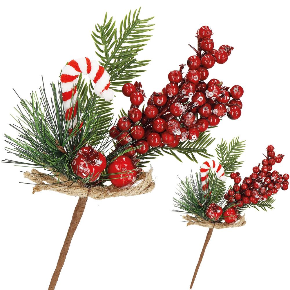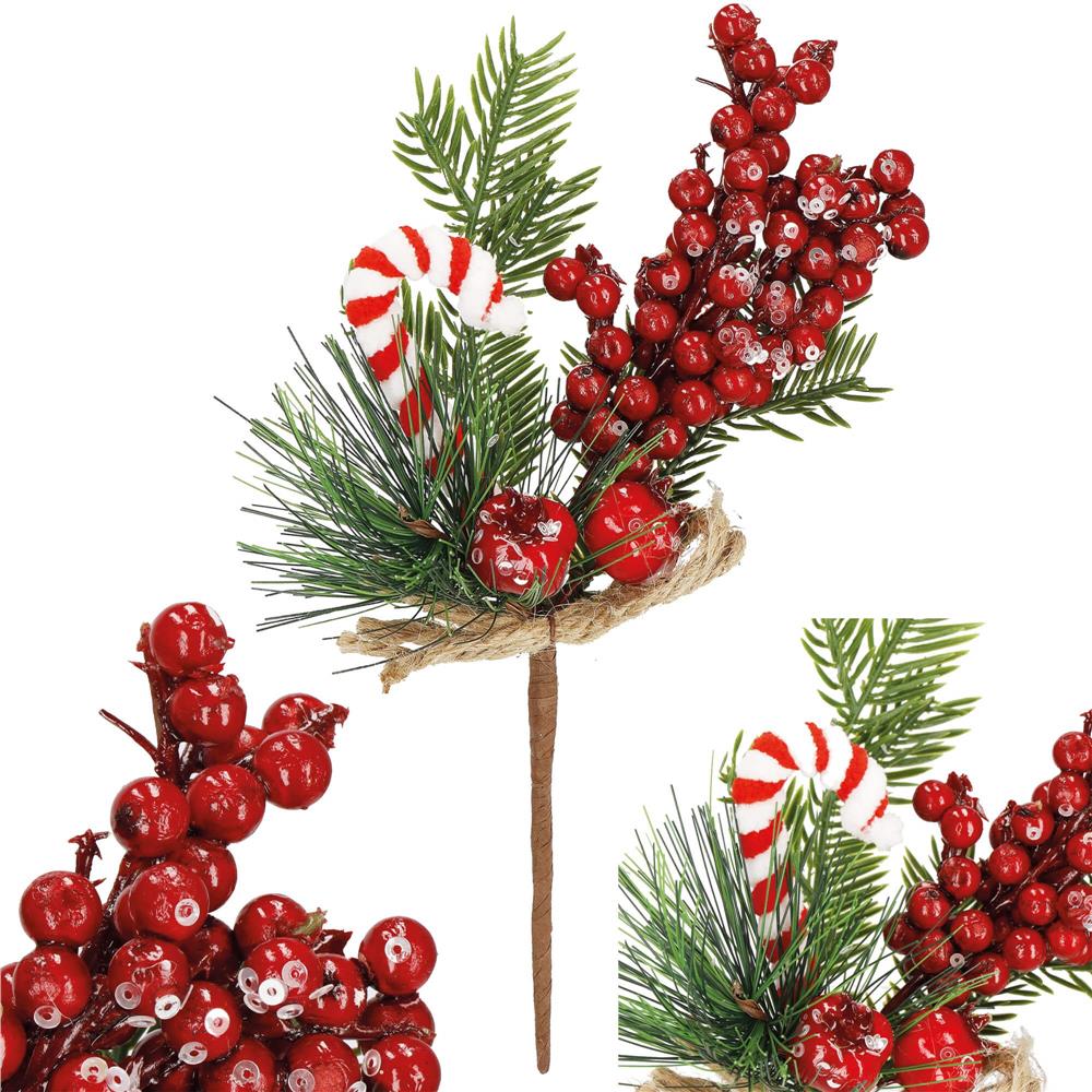 Ramura decorativa de Craciun cu fructe rosii, acadea si iuta, 24 cm