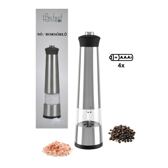 Râșniță electrică pentru sare și piper din inox, 22,5 cm, cu buton